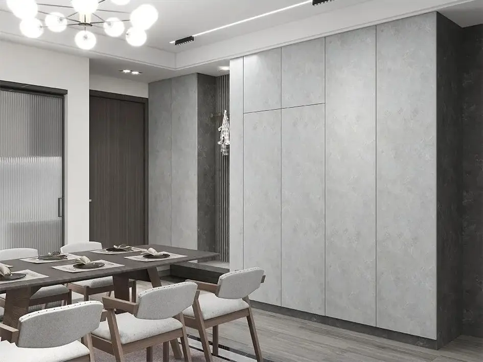 我們與意大利工作室深度合作,共同開發潮流產品,涵蓋多種流行風格。其特點是PVC膜和裝飾層壓紙在色彩搭配上非常相似,是當前流行的全屋定制行業的優選。